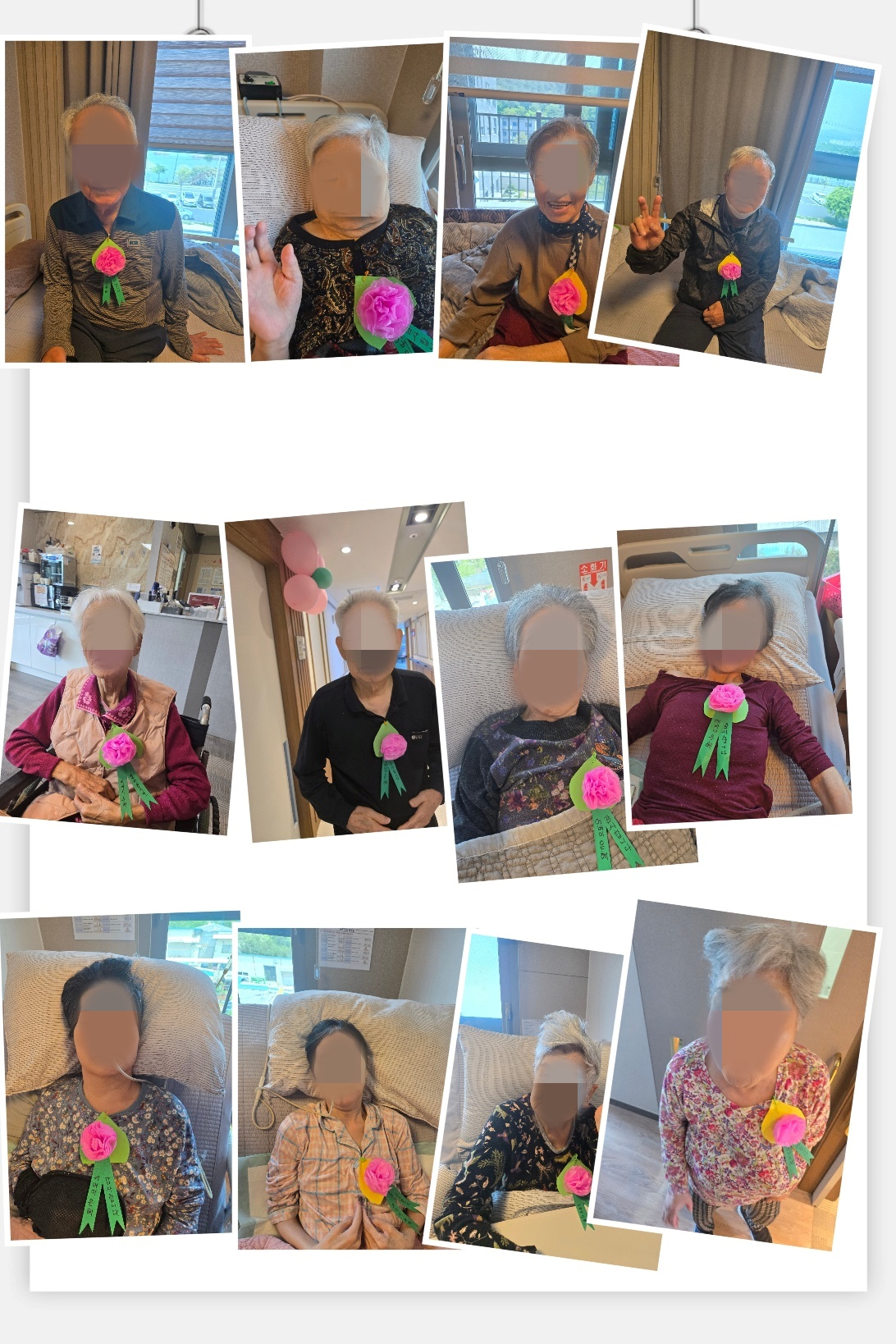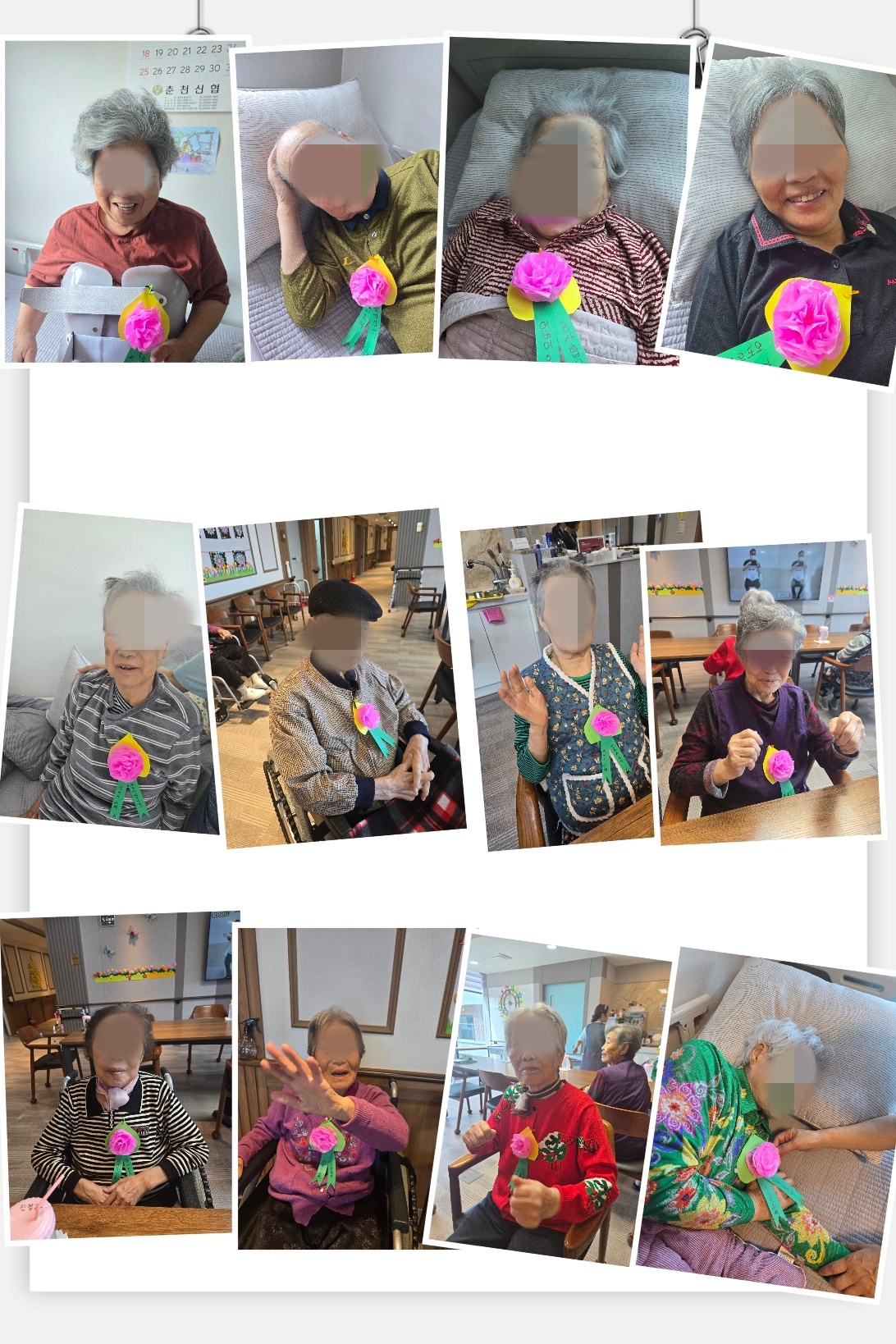 요양원 자체적으로는, 생화 카네이션을 준비하여